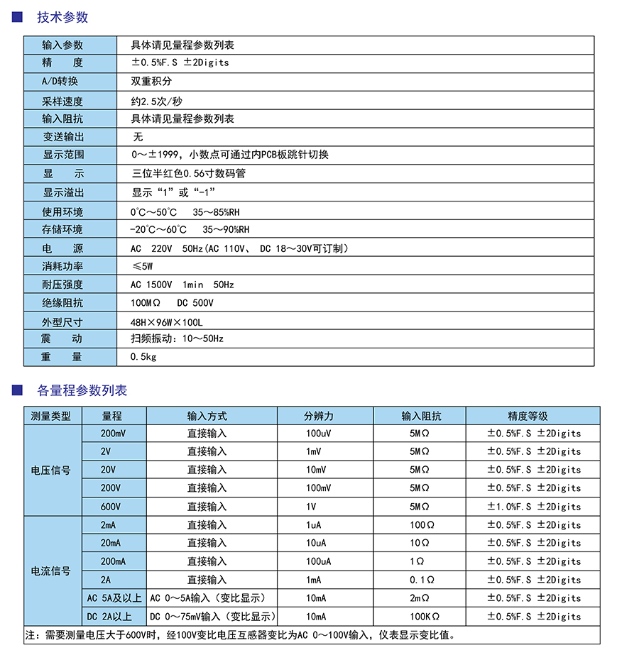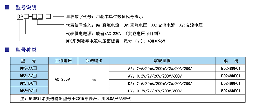 DP3系列三位半電壓電流表