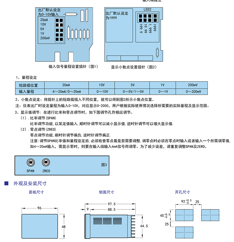 面板帶顯示范圍自由節功能,及內部可以切換小數點