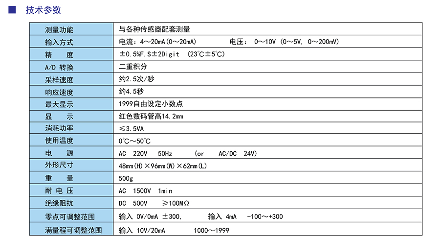 ★ 具有小數(shù)點設定、比率、量程及零點調(diào)整功能。